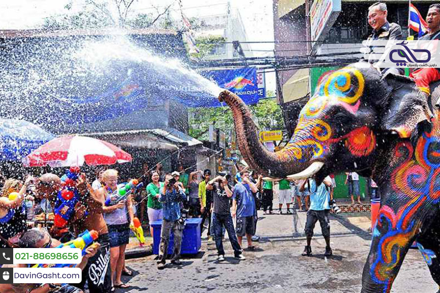 فصل باران بوده و به باور مردم تایلند، این آب بد اقبالی را از آن ها شسته و دور می‌کند.