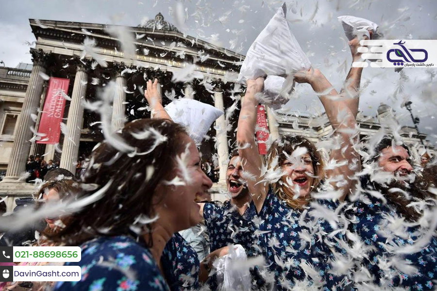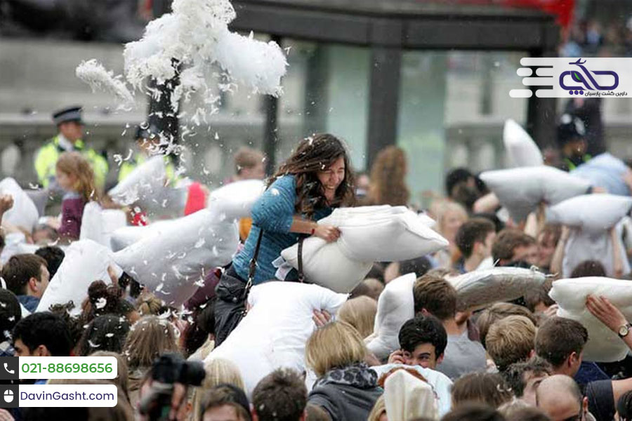 این فستیوال یکی از بزرگترین جشنواره هایی است که در دنیا برگزار می شود. در آن مردم در خیابان ها شروع به دعوا با بالش با یکدیگر می کنند. در این همایش مفرح جمعیت علاقه مند در نقاط تعیین شده گرد هم می‌آیند و با بالش‌هایی که معمولا با پر قو پر شده است به کتک زدن یکدیگر می‌پردازند!